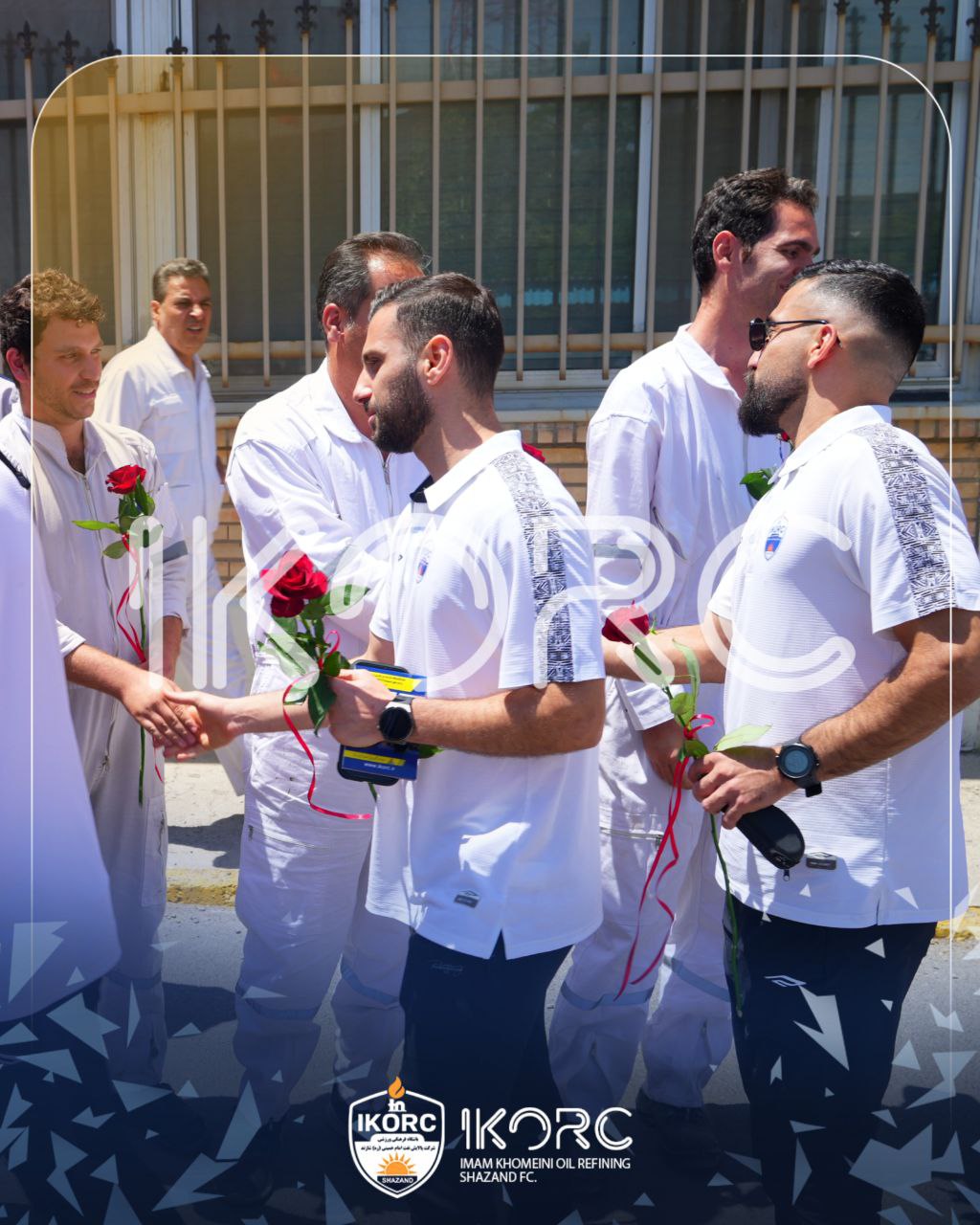 قبلی حضور بازیکنان تیم فوتسال پالایشگاه شازند در بین کارگران این صنعت
