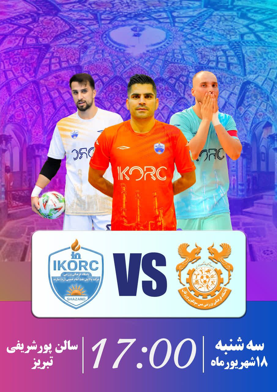 در یک بازی جذاب و تماشایی، تیم فوتسال پالایشگاه نفت شازند مقابل باشگاه فرهنگی ورزشی مس سونگون ورزقان صف آرایی خواهد کرد!